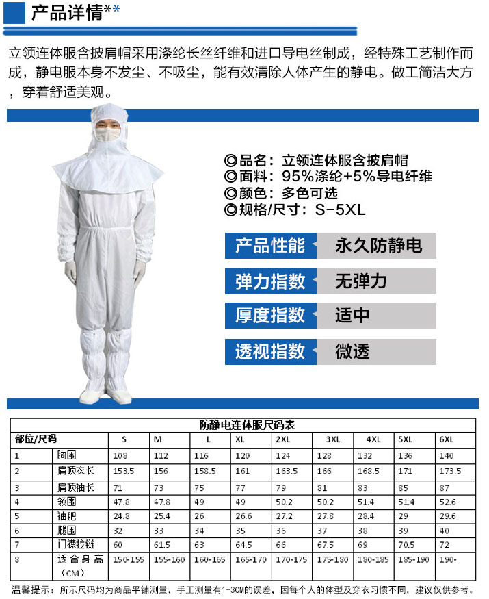 液晶行業(yè)--防靜電服立領(lǐng)連體服含披肩帽